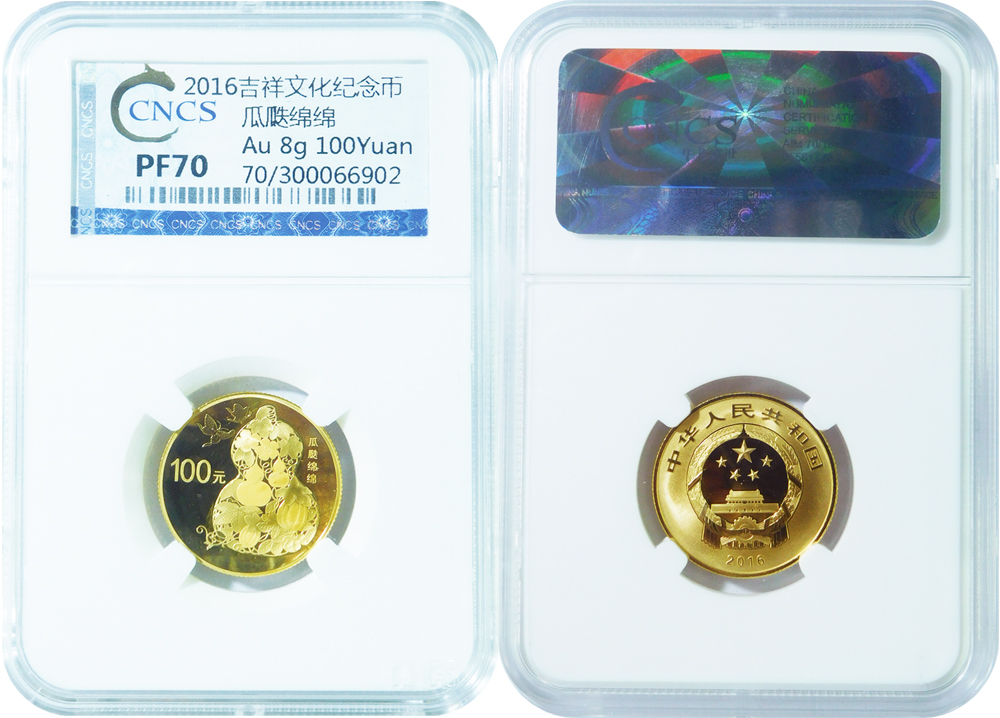 2016吉祥文化金銀紀(jì)念幣8克圓形金質(zhì)紀(jì)念幣-瓜瓞綿綿